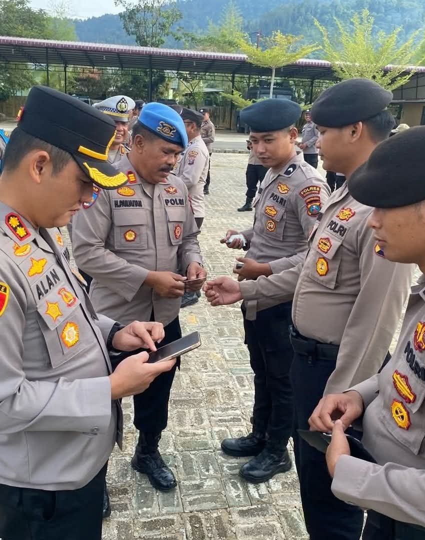 Selain melakukan pengecekan pada ponsel milik anggota untuk mengantisipasi aplikasi judi online (judol), AKBP Muhammad Alan Haikel juga memeriksa kerapian perorangan (sikap tampang) dan kelengkapan administrasi wajib bagi setiap anggota Polri.