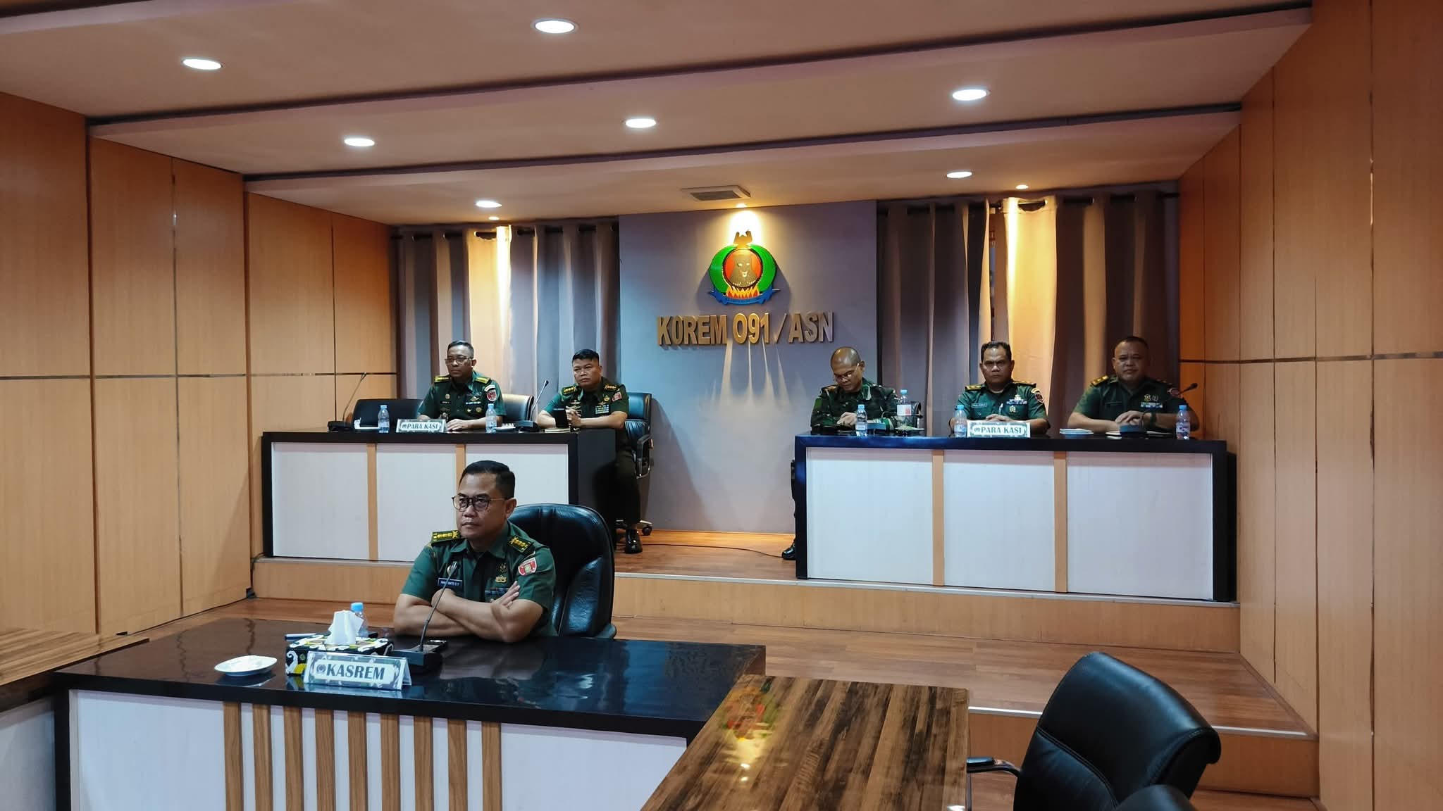 Cakrawalaasia.news, Samarinda – Kasrem 091/ASN, Kolonel Kav. Rahyanto Edy Yunianto S.A.P. menghadiri Kegiatan Konfirmasi Temuan Audit Kinerja Itjenad wilayah Kaltim dan Kaltara secara virtual, bertempat di ruang Command Center Korem 091/ASN Jl. Gajah Mada Kel. Bugis Kec. Samarinda Kota, Samarinda, Rabu (29/10/2025).