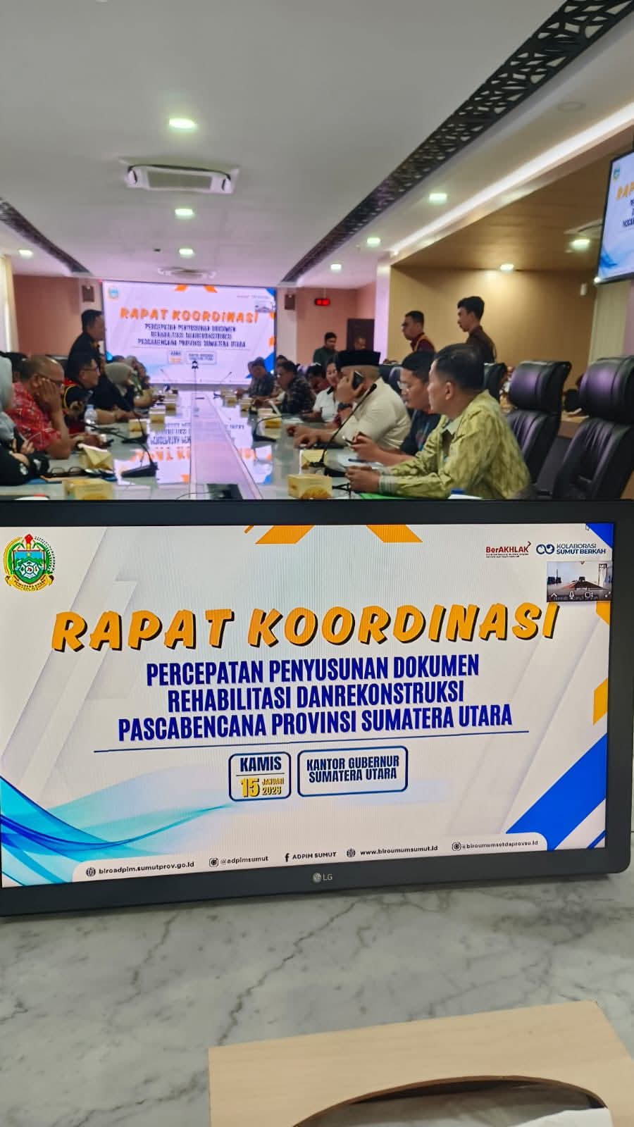 Rapat tersebut dipimpin oleh Pj. Sekretaris Daerah Provinsi Sumut dan dihadiri unsur pengarah BNPB, perwakilan kementerian/lembaga, serta pemerintah kabupaten/kota terdampak.