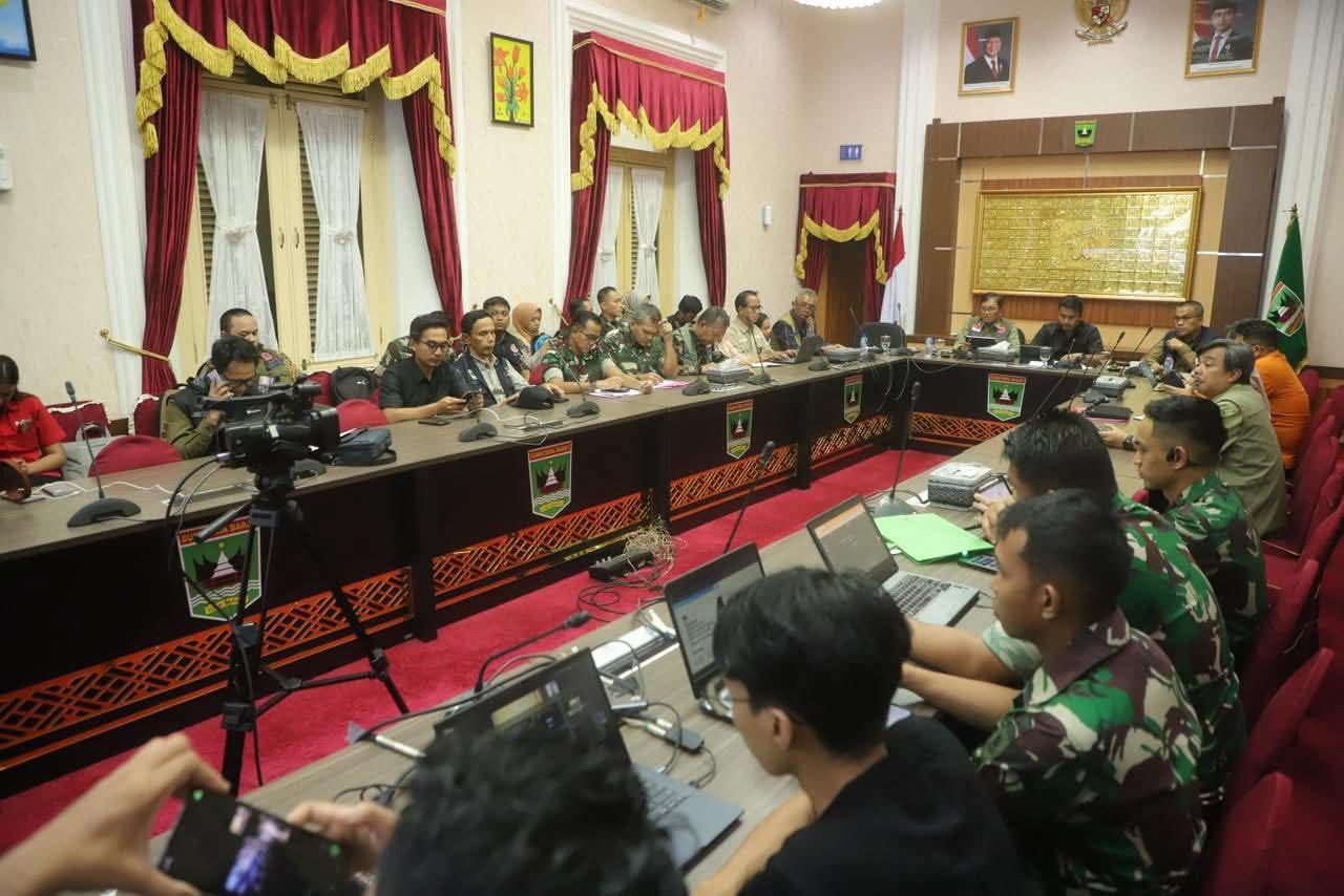 Wakil Gubernur Sumatra Barat (Sumbar) Vasko Ruseimy dan Sekretatis Utama Badan Nasional Penanggulangan Bencana (BNPB) Dr. Rustian memimpin rakor yang dihadiri unsur forkopimda terkait.