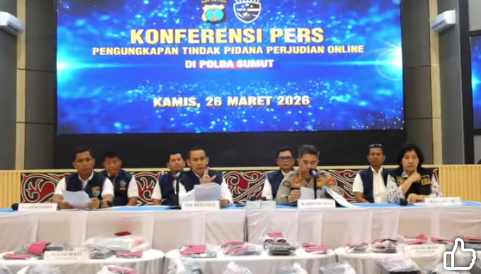 Pengungkapan itu disampaikan oleh Dirresiber Polda Sumut Kombes Pol Dr. Bayu Wicaksono dalam konferensi pers yang dibuka oleh Kabid Humas Polda Sumut Kombes Pol Ferry Walintukan di Aula Tribrata Polda Sumut, Kamis (26/3/2026).