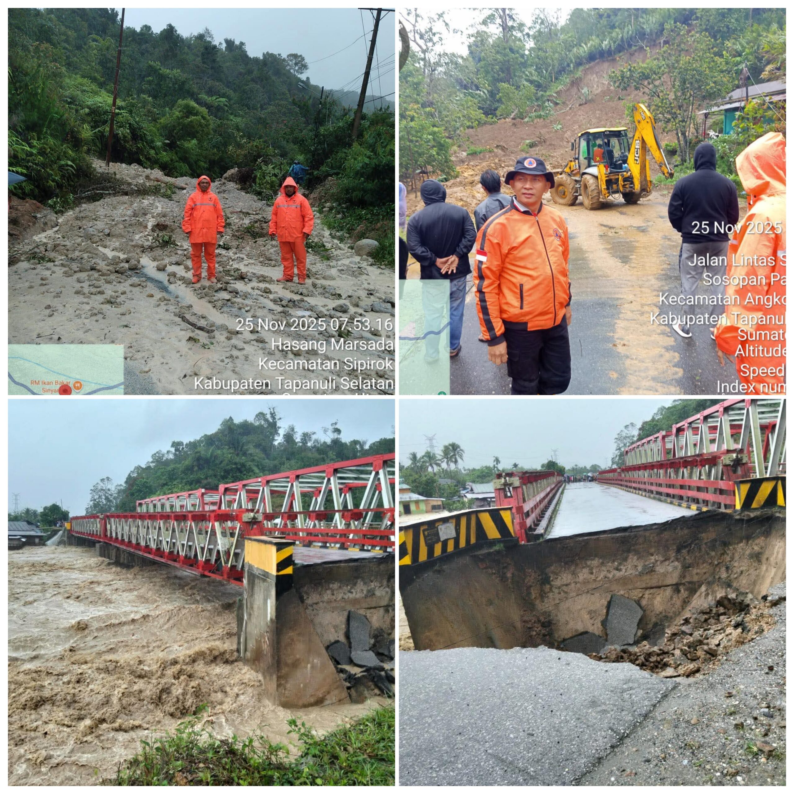 Sementara itu, sebanyak 50 unit rumah terdampak dan dua jembatan terputus akibat banjir serta tanah longsor di Kabupaten Tapanuli Utara. BPBD dan tim gabungan melakukan pendataan dan merekomendasikan jalur alternatif Pangaribuan-Silantom sebagai akses jalan sementara.