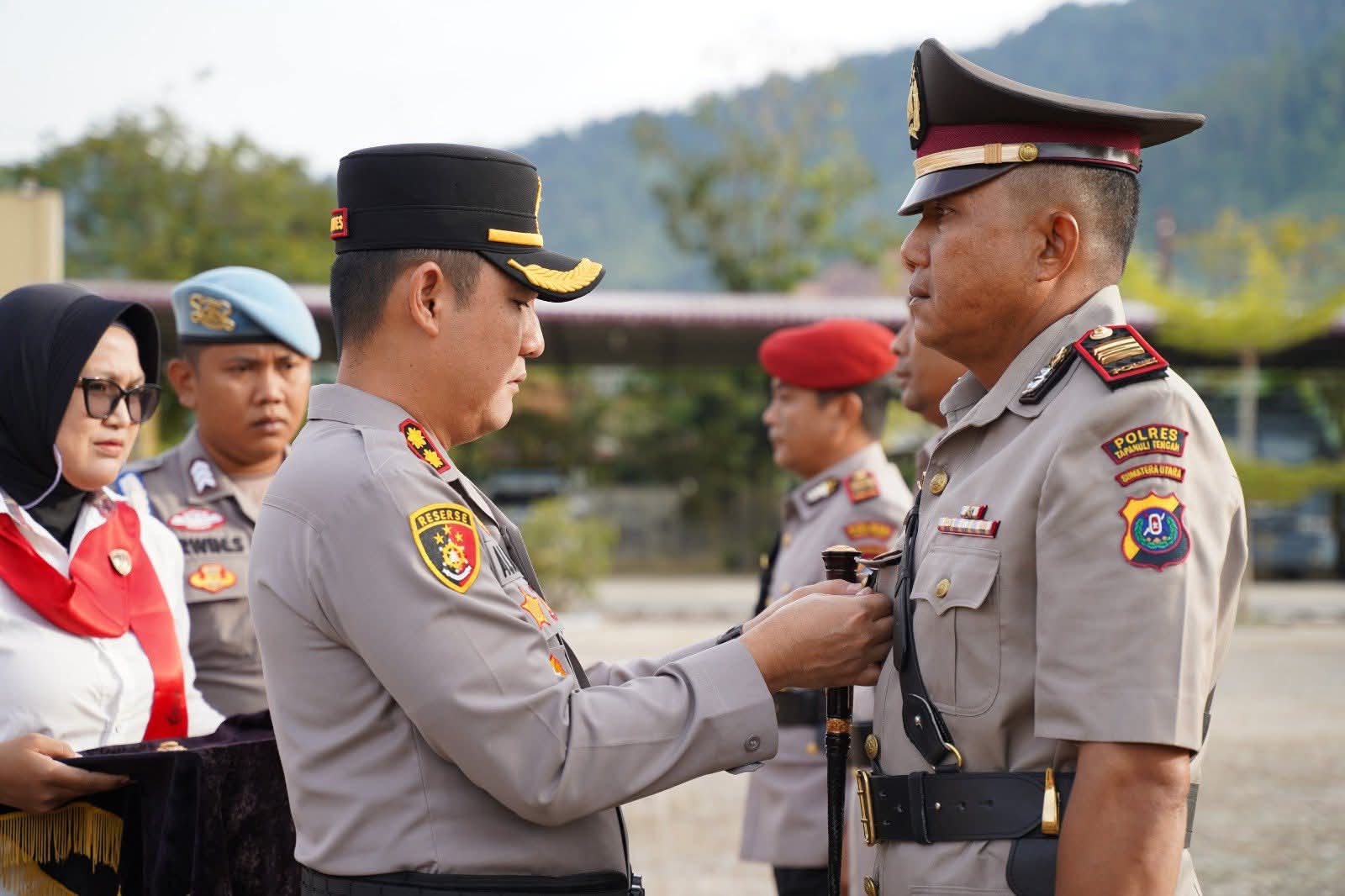 Turut hadir dalam upacara tersebut Perwira Upacara Kompol Sargatua Siregar, S.H., Komandan Upacara Ipda Marwan Hasibuan, serta barisan perwira, bintara, ASN Polres Tapteng, dan pengurus Bhayangkari Cabang Tapanuli Tengah. Kegiatan diakhiri dengan pemberian ucapan selamat dan sesi foto bersama.