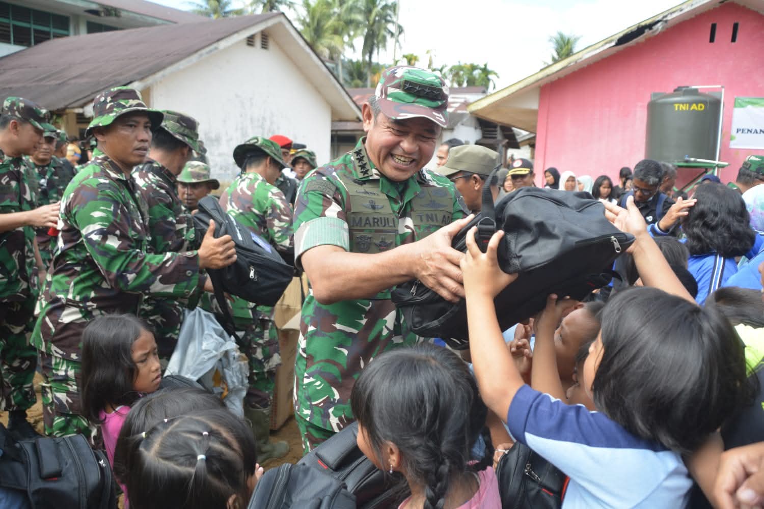Pada kesempatan tersebut, Kasad menyerahkan secara langsung bantuan perlengkapan sekolah kepada para siswa berupa tas, buku tulis, alat tulis, serta berbagai kebutuhan penunjang kegiatan belajar mengajar lainnya.