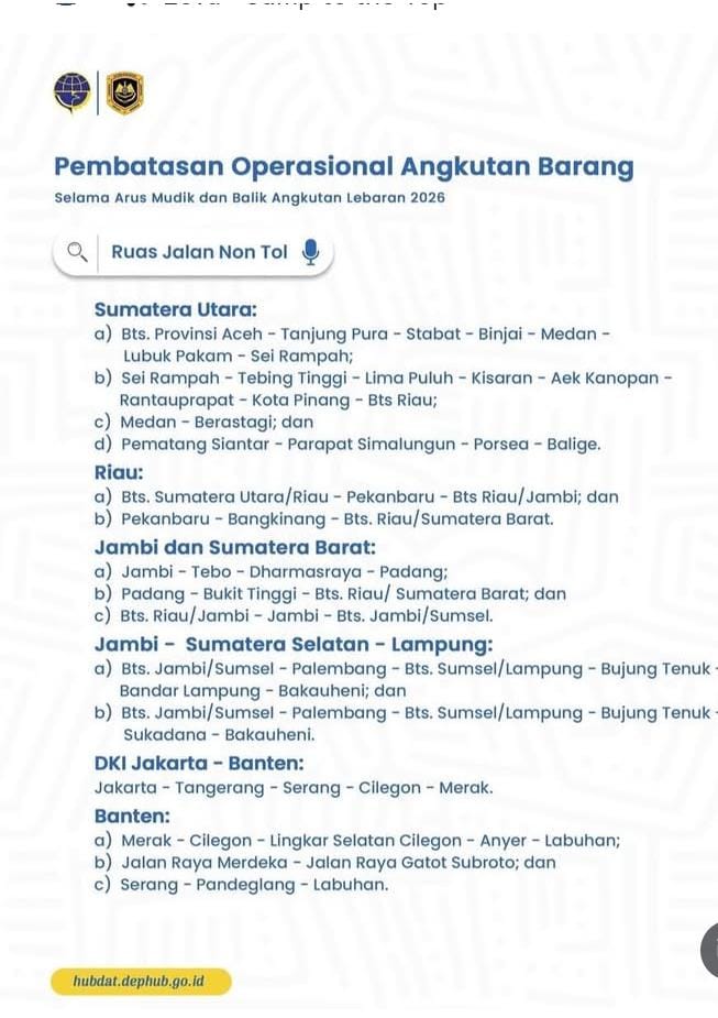 Kemenhub Berlakukan Pembatasan Operasional Angkutan Barang Mulai Tanggal 13- 29 Maret 2026