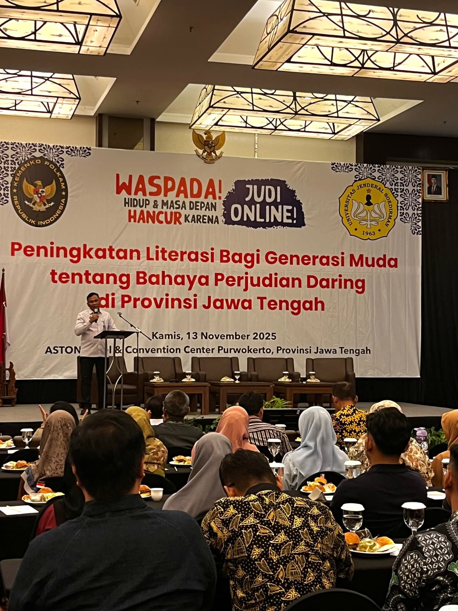 Cakrawalaasia.news, Purwokerto – Kementerian Koordinator Bidang Politik dan Keamanan (Kemenko Polkam) menyelenggarakan kegiatan Rapat Koordinasi Peningkatan Literasi bagi Generasi Muda tentang Bahaya Perjudian Daring.