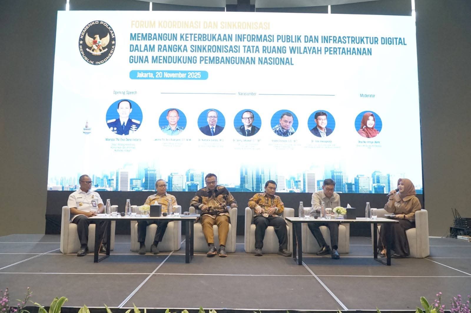 Hal tersebut disampaikan melalui Forum Koordinasi dan Sinkronisasi Membangun Keterbukaan Informasi Publik dan Infrastruktur Digital Dalam Rangka Sinkronisasi Tata Ruang Wilayah Pertahanan Guna Mendukung Pembangunan Nasional di Jakarta, Kamis (20/11/2025).
