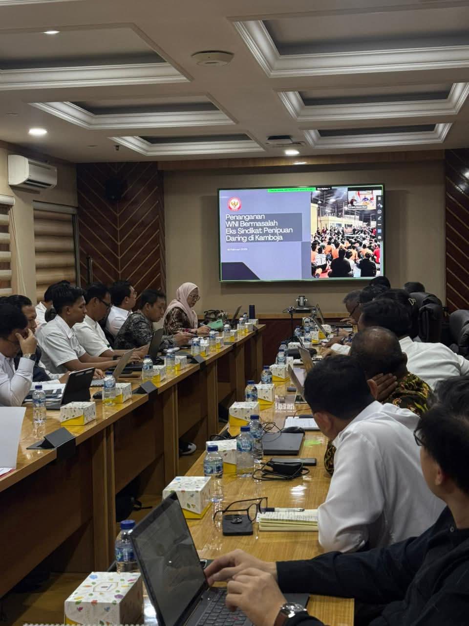 Ia menambahkan bahwa rapat ini diadakan untuk memperkuat koordinasi lintas kementerian/lembaga guna memastikan langkah penegakan hukum dan perlindungan WNI berjalan optimal.