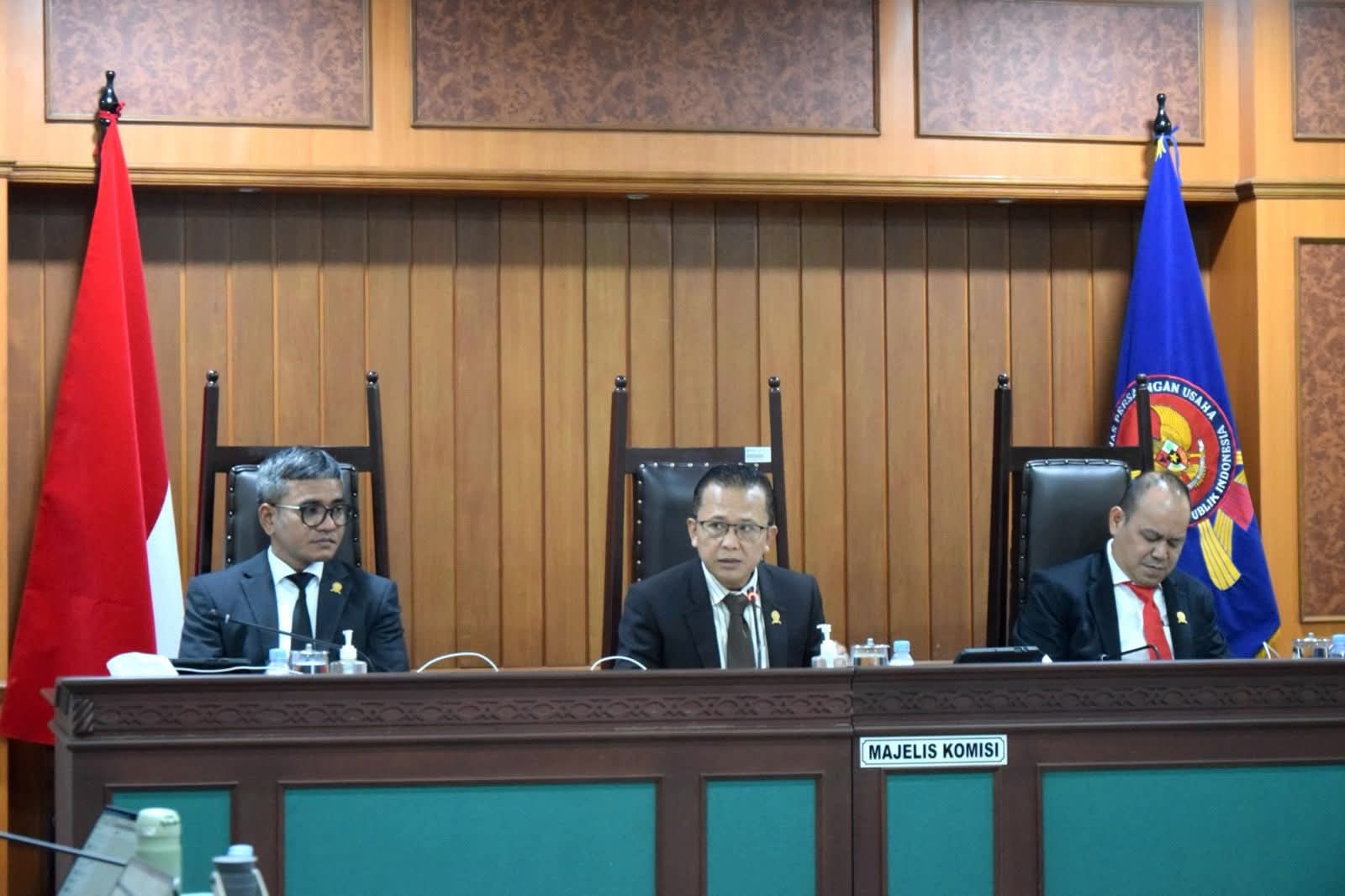 Sidang dipimpin oleh Anggota KPPU Moh. Noor Rofieq selaku Ketua Majelis Komisi bersama Anggota KPPU Rhido Jusmadi dan Gopprera Panggabean selaku Anggota Majelis Komisi. Dalam perkara ini, terdapat lima pihak terlapor, yakni PT Timas Suplindo, PT Pratiwi Putri Sulung, PT Pembangunan Perumahan (Persero) Tbk, PT Nindya Karya (Persero), dan Kelompok Kerja Pemilihan KESDM 7.