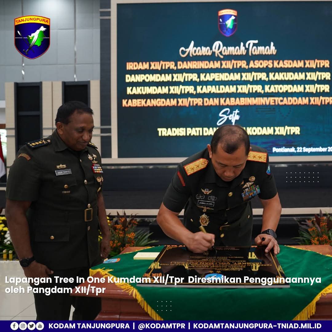 Melalui peresmian Penggunaan tersebut, Lapangan Tree In One yang telah selesai dibangun pada masa Kolonel Inf Dr. Drs. Imam Syafei menjabat Kakumdam XII/Tpr saat ini sudah dapat dimanfaatkan oleh anggota TNI maupun masyarakat luas untuk berolahraga, baik voly, basket maupun futsal. Selain lapangan multi guna tersebut, juga telah selesai dibangun Pos Penjagaan dan Gapura.