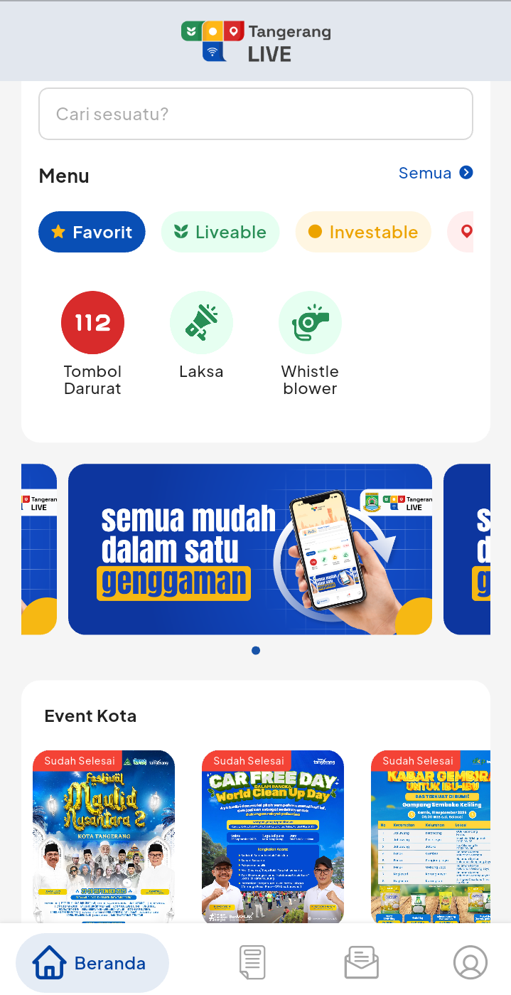 - Download aplikasi Tangerang LIVE