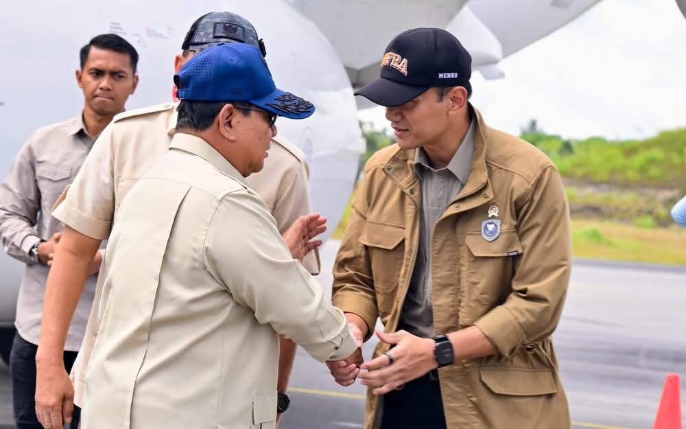 Presiden bahkan sempat memanggil Menko AHY dan Menhan Sjafrie yang berada di belakangnya untuk berdiskusi lebih dekat, disertai gestur akrab saat membahas percepatan pemulihan infrastruktur.