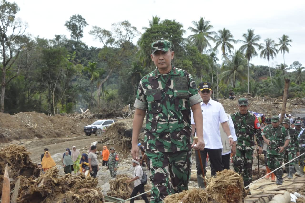 Pangdam I/BB meninjau langsung kondisi wilayah terdampak, sarana dan prasarana yang rusak, serta upaya penanganan yang telah dilakukan oleh TNI bersama unsur pemerintah daerah dan instansi terkait. Ia juga berdialog dengan masyarakat serta meninjau sejumlah fasilitas darurat yang telah dibangun.