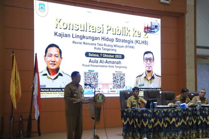 “Kami bersama semua perwakilan masyarakat bersama-sama membahas dokumen KLHS untuk memastikan aspek lingkungan hidup dan pembangunan berkelanjutan dapat diakomodir dalam penyusunan rencana RTRW Kota Tangerang,” ujar Taufik selepas membuka Forum Konsultasi Publik 2 KLHS Revisi RTRW Kota Tangerang di Puspem Kota Tangerang, Selasa (7/10/25).