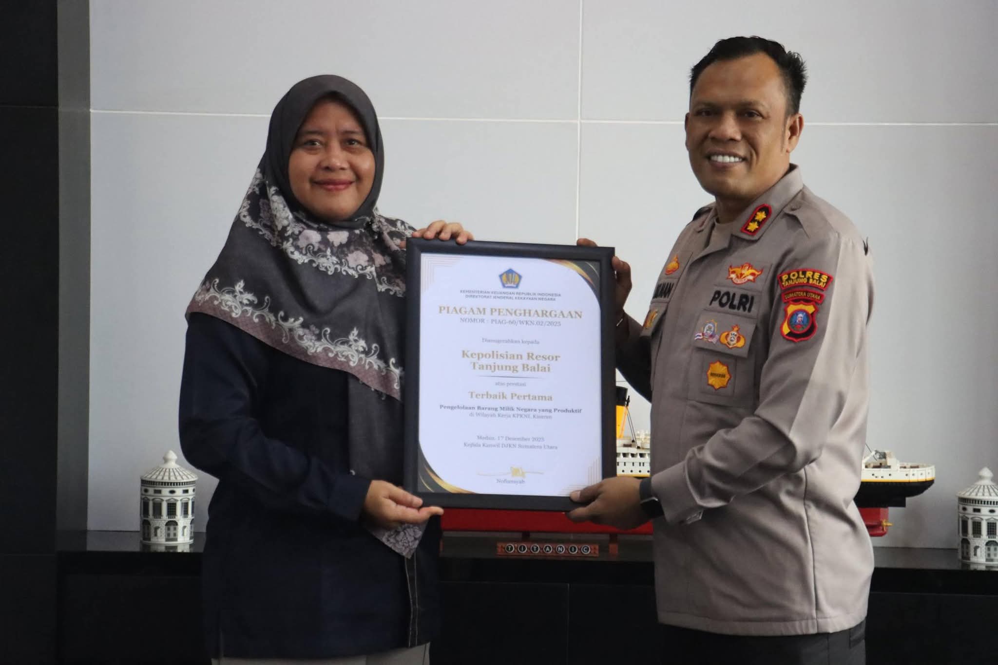 Cakrawalaasia.news, TANJUNG BALAI – Polres Tanjung Balai kembali mengukir prestasi di bidang tata kelola administrasi. Di bawah kepemimpinan AKBP Welman Feri, S.I.K, M.I.K., Polres Tanjung Balai berhasil meraih penghargaan dalam ajang Pengelolaan Kekayaan Negara Awards 2025 yang diberikan oleh Kantor Pelayanan Kekayaan Negara dan Lelang (KPKNL) Asahan.
