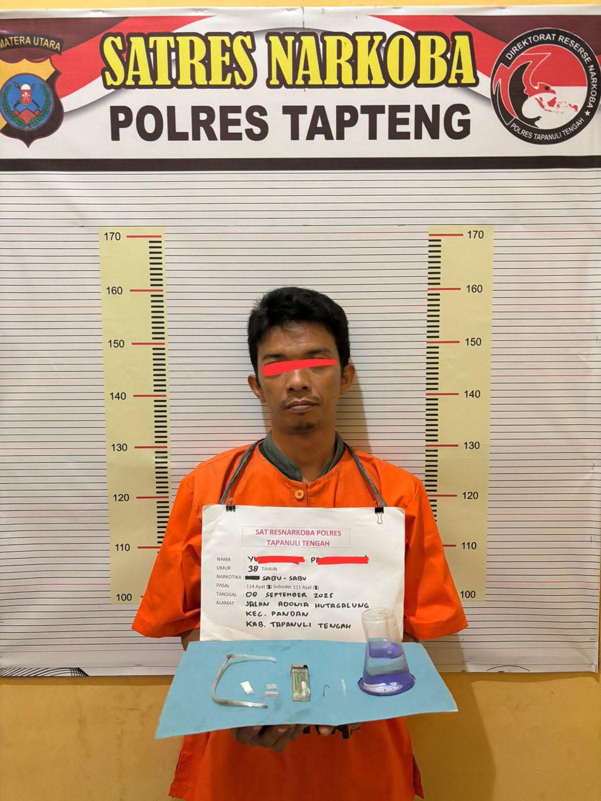 Cakrawalaasia.news, TAPANULI TENGAH – Satuan Reserse Narkoba (Satresnarkoba) Polres Tapanuli Tengah (Tapteng) menangkap seorang pengedar narkotika jenis sabu YP (38) di Jalan Prof Mr. Dr. M. Hazairin, Kelurahan Aek Tolang, Kecamatan Pandan, Kabupaten Tapanuli Tengah, Senin (8/9/2025), sekitar pukul 23.00 WIB.