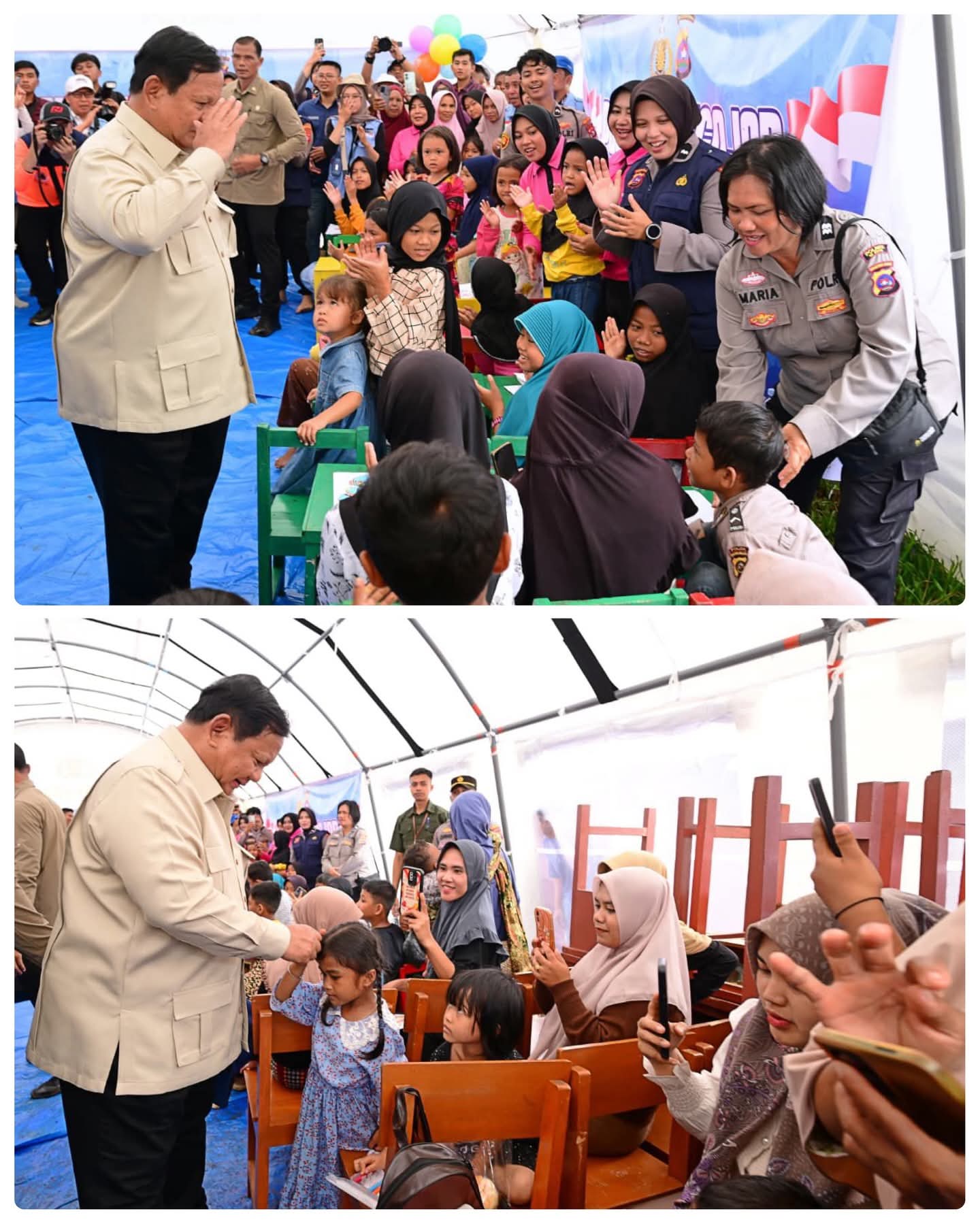 Di posko pengungsian, Kepala Negara meninjau langsung kondisi para pengungsi terdampak bencana sekaligus memastikan penanganan darurat berjalan dengan baik. Presiden juga meninjau posko trauma healing dan memberikan semangat kepada anak-anak agar tetap ceria dan kuat menghadapi situasi pascabencana.