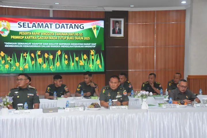 Rapat Anggota Tahunan (RAT) diusung dengan tema “Dengan Semangat Adaptif dan Solutif Koperasi Angkatan Darat Siap Membangun Kemandirian Dalam Rangka Mensejahterakan Anggota” yang bertempat di Aula Gatot Subroto Mapuspomad, Jakarta, Kamis (5/2/2026)