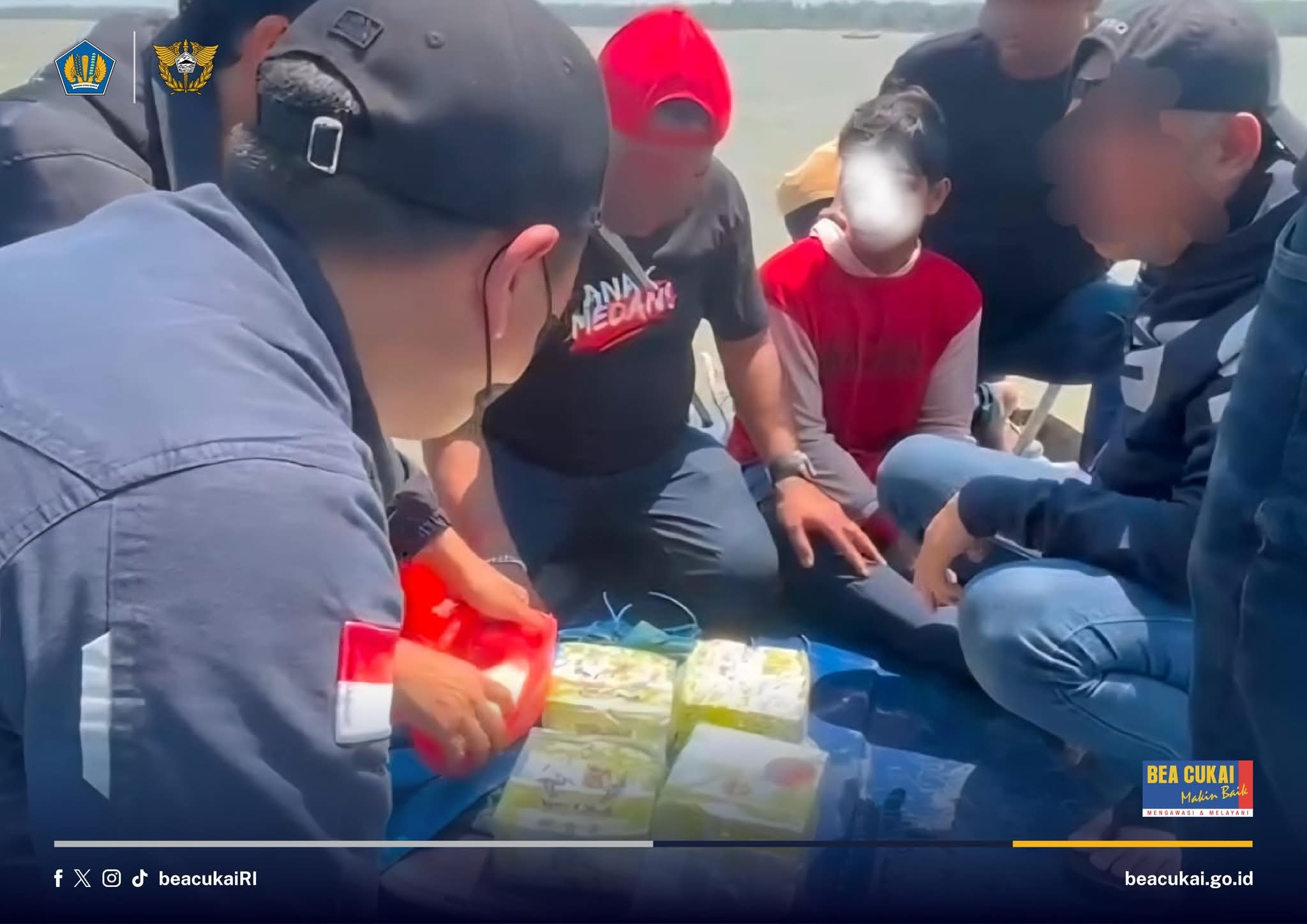 Foto : Tim gabungan Bea dan Cukai Teluk Nibung dan Polda Sumut saat mengamankan 3 orang terduga kurir dan barang bukti 4,2 Kg Narkoba jenis sabu di perairan Asahan. (sumber : Ditjen Bea dan Cukai).