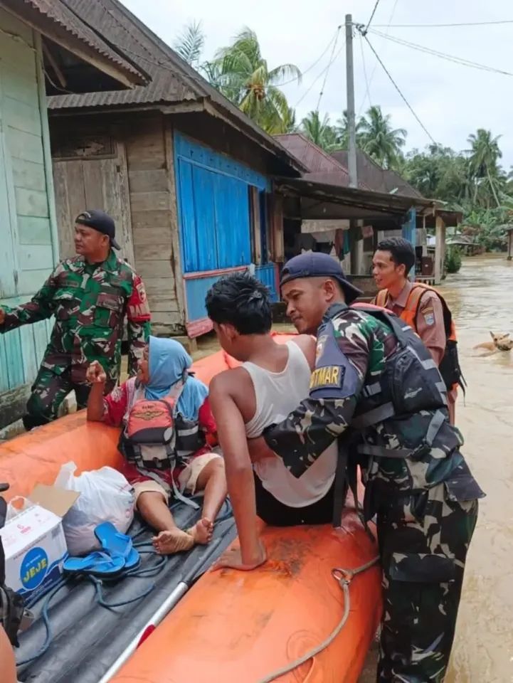 Foto : Prajurit TNI AL evakuasi warga, (sumber : Puspen TNI).